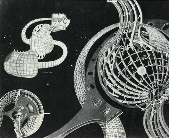 Of the entries submitted to 1989's "Peace Station" competition, program author Michael Sorkin stated, "While I think most entries have preferred prosody to mechanics, the forms arrived at are so varied and lovely that I feel nothing but confidence for the future of architecture, on or off the planet." The drawing seen here was submitted by Maria Laura Salinas from Oklahoma State University.