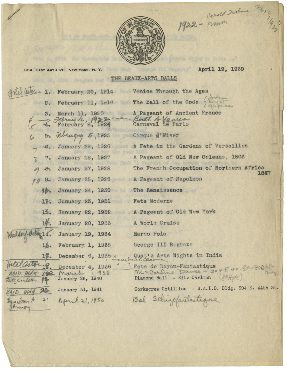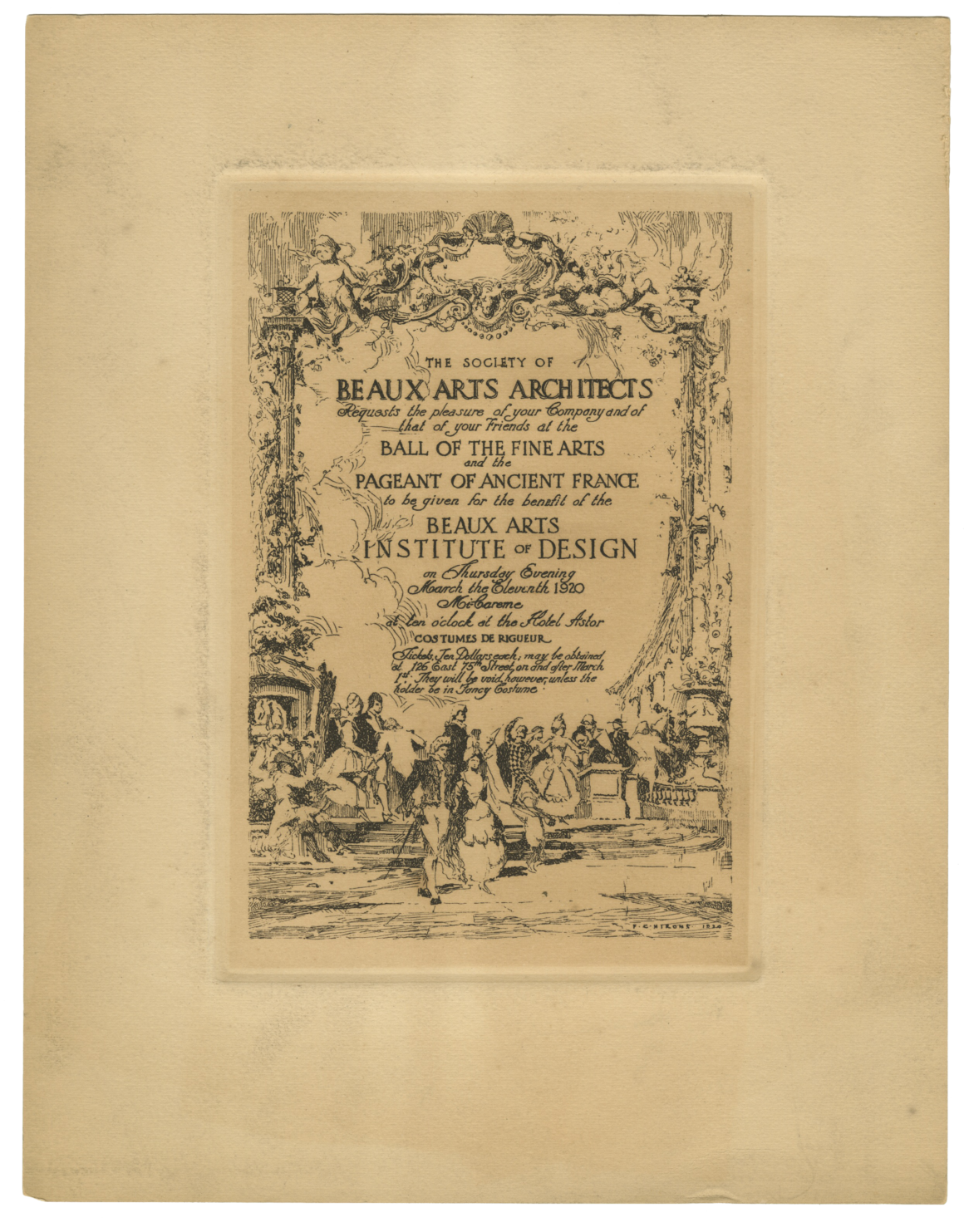 An invitation to the 1920 Beaux Arts Ball. The event was held at the Hotel Astor each year