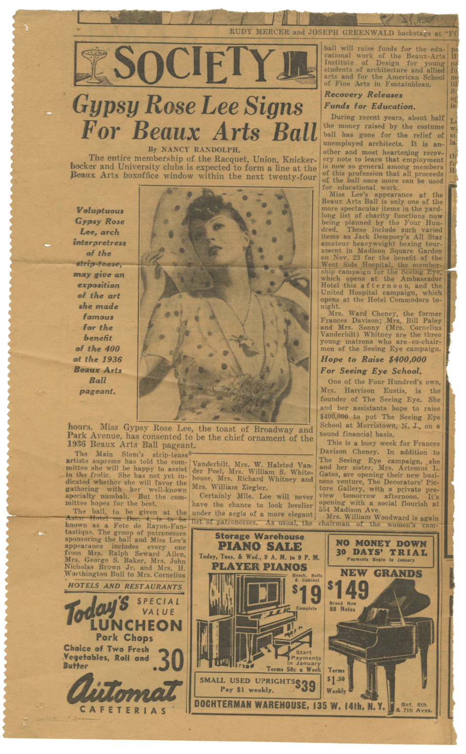 Burlesque dancer Gypsy Lee preformed at the 1936 Ball and was the talk of the town