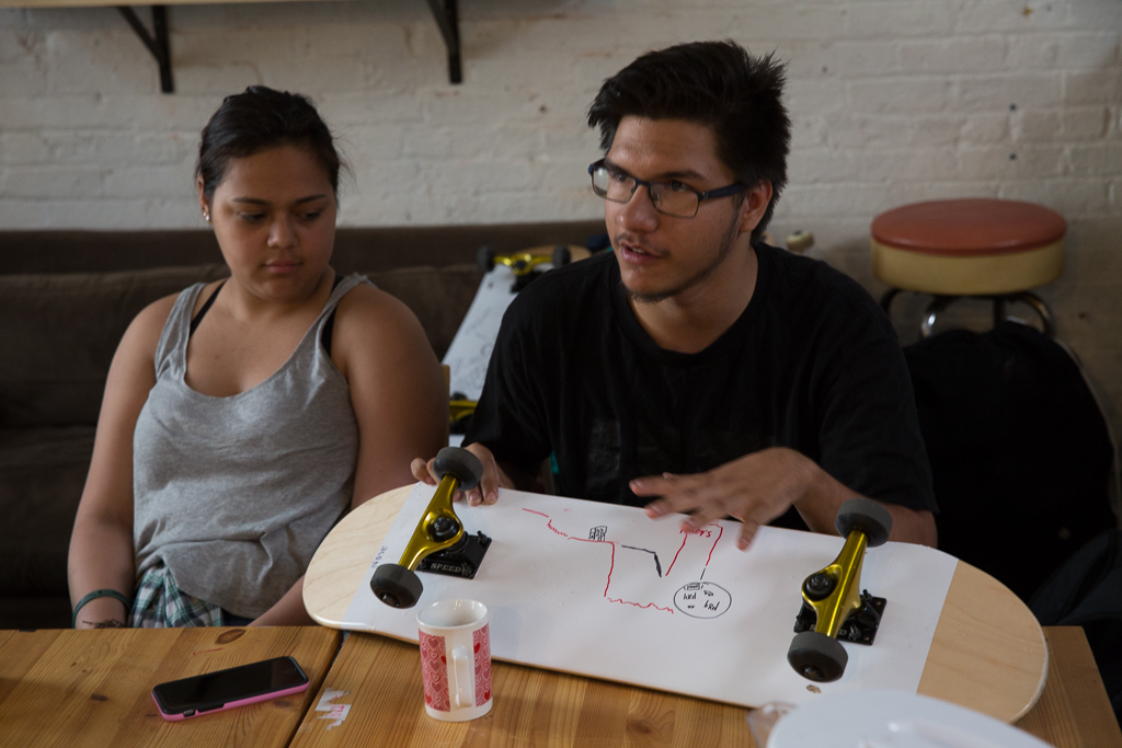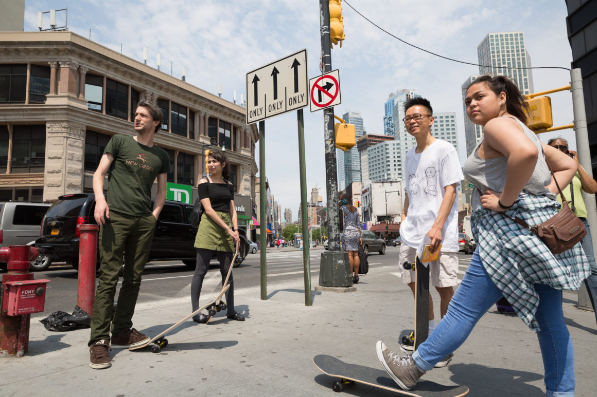 On June 11, we took to skateboards in an exploration of four-wheeled transportation and local architecture along one of Brooklyn’s most iconic thoroughfares. Participants of all ages and skills were invited to join in this tour that aims to disrupt our conceptions of how we pass through a street. Following the tour, we collaborated on a map-making exercise considering how skateboarding can be a vehicle to reimagine the city. The program also featured insight from Damon Rich, designer, artist, urban planner, and co-author alongside Rosten Woo and Meredith TenHoor of Street Value: Shopping, Planning, and Politics at Fulton Mall.