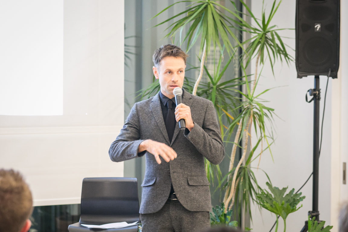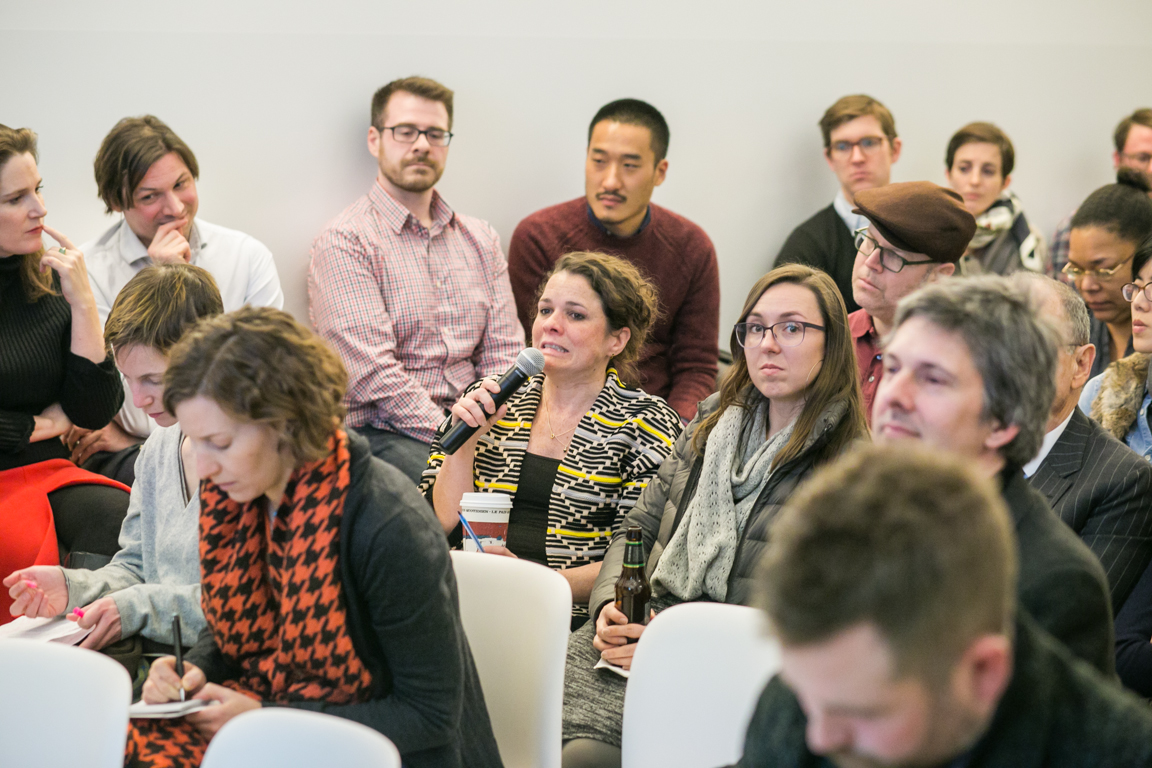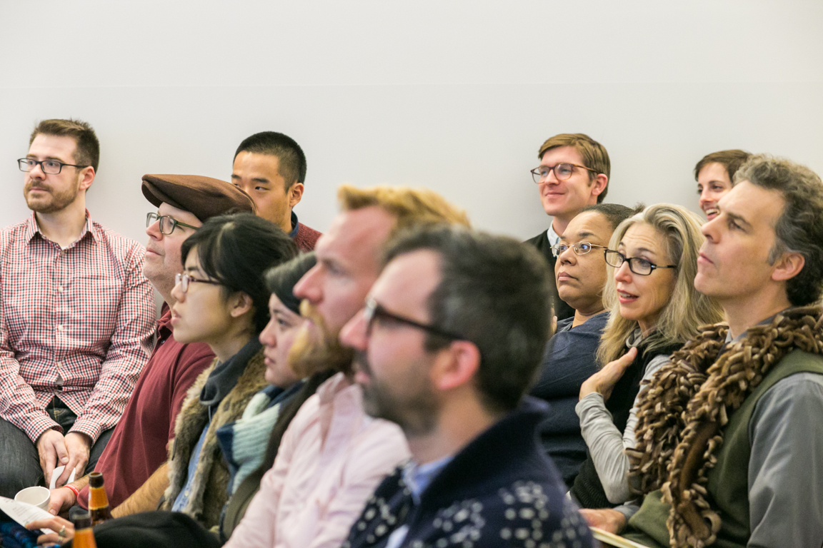 Michael Smythe presenting the research team's methodology during the project launch at Van Alen, January 29, 2015
