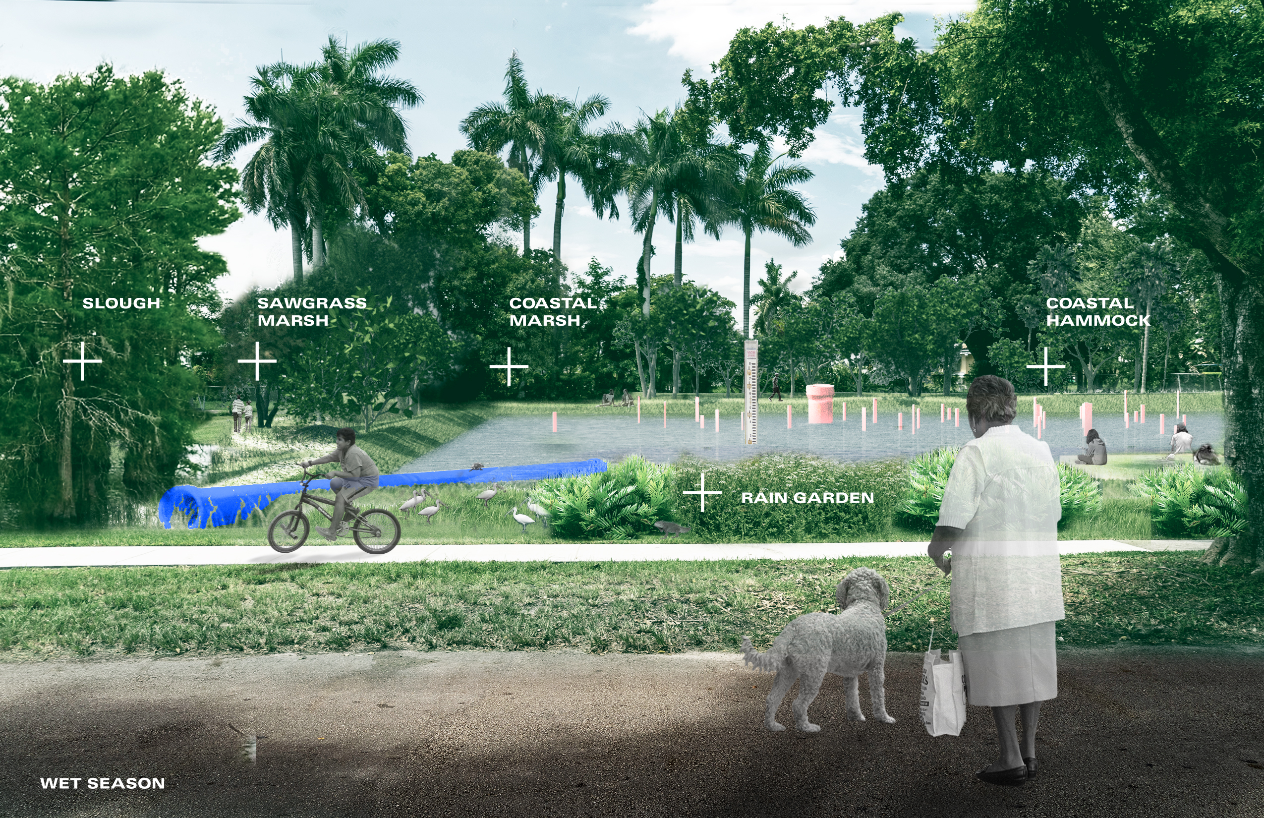 Van Alen and the city of North Miami recently named Department Design Office as the winner of our Keeping Current: Repetitive Loss Properties design competition. Their design, a collaboration with team members Adler Guerrier, Forerunner, and Andrew Aquârt, will transform a flood-prone site in North Miami into a community space and stormwater management site, incorporating native plants that have diminished due to development.