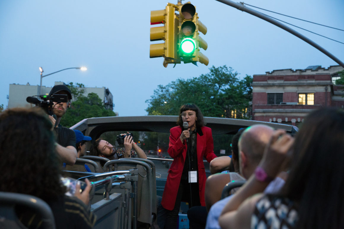 How do our own bodies react to, resist, and subvert the city’s imposed geographic arteries, institutions, and invisible borders? Participants joined artist Daniel Bejar aboard a co-opted double decker bus for an alternative participatory tour of Williamsburg’s gerrymandered arteries, an extension of his current work, “RE-districting” (featured in The Drawing Center exhibition, Marginalia), which illuminates gerrymandered Congressional and State Senate districts through site-specific walks with a GPS device.