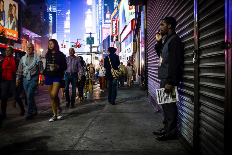 “The city is my natural habitat,” she declares as a subway train roars along the J/M tracks just outside her South Williamsburg studio, populated with colorful pieces of art, rolls of vinyl, cutting tools, and computers.