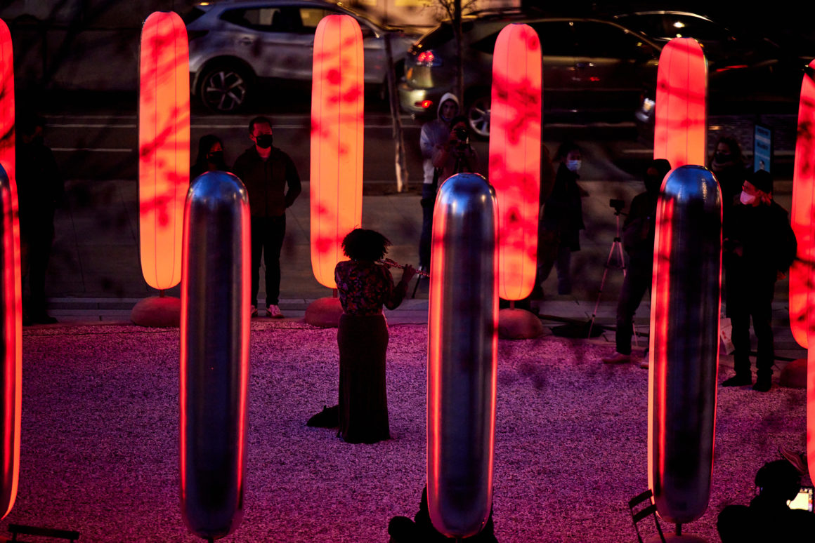 Breathing Pavilion by Ekene Ijeoma created a public space of reprieve during this time of intense hardship and loss. Visitors were invited to enter the pavilion and breathe in time with the changing light for a moment of communal meditation.