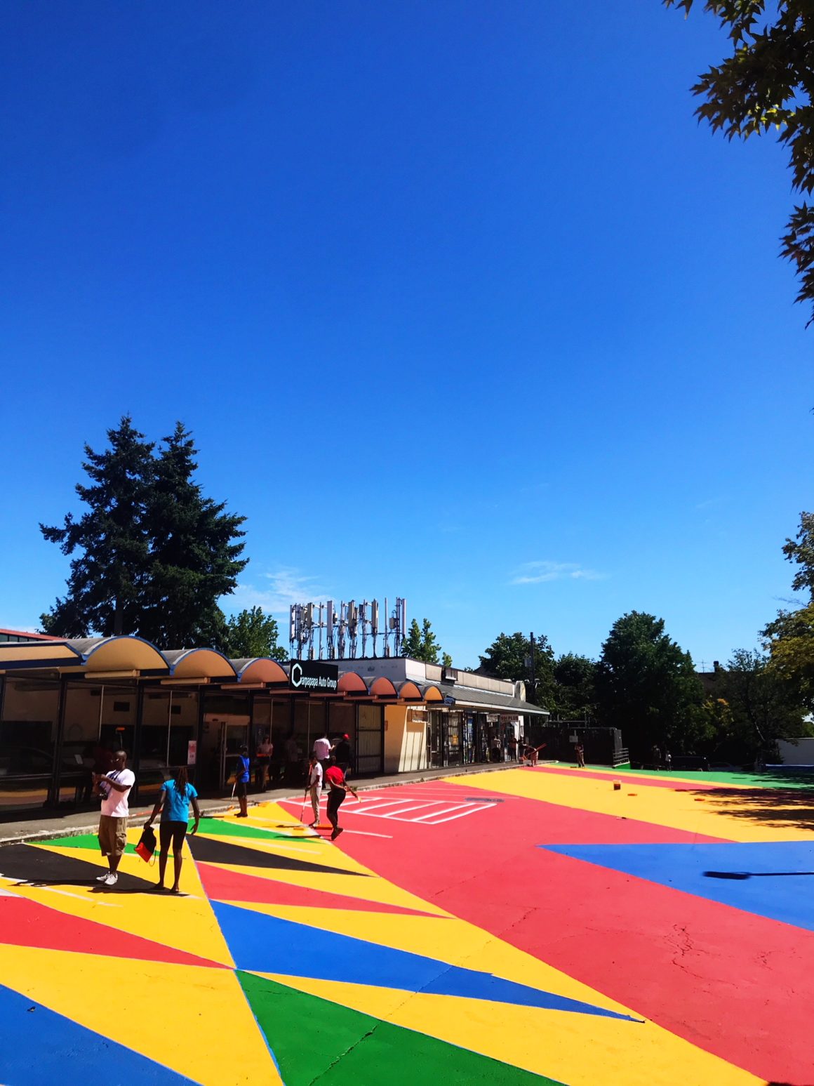 As the first Flatiron Public Design Installation to be spread throughout both the North and South Plazas, Point of Action’s larger footprint allows for more socially distanced engagement. However, the installation’s concentric circles ripple out from each spot, eventually connecting with other circles, and thus other viewers, across the Plazas.