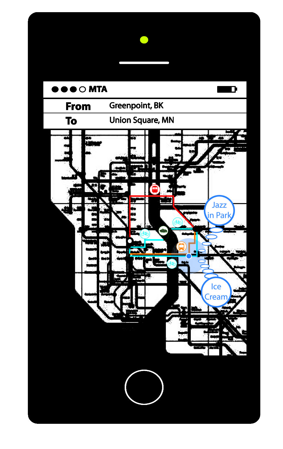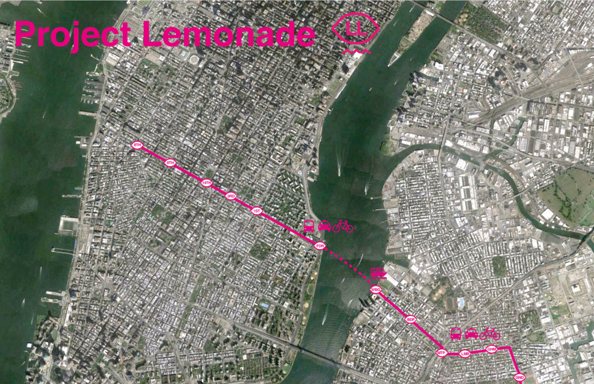 In 2019, New York becomes what it really is… an island. Enter Lemonade Line (LL), a multimodal transportation strategy that provides an all-access pass to seamlessly linked buses, bikes, car-shares, and ferry lines following the L line above ground.