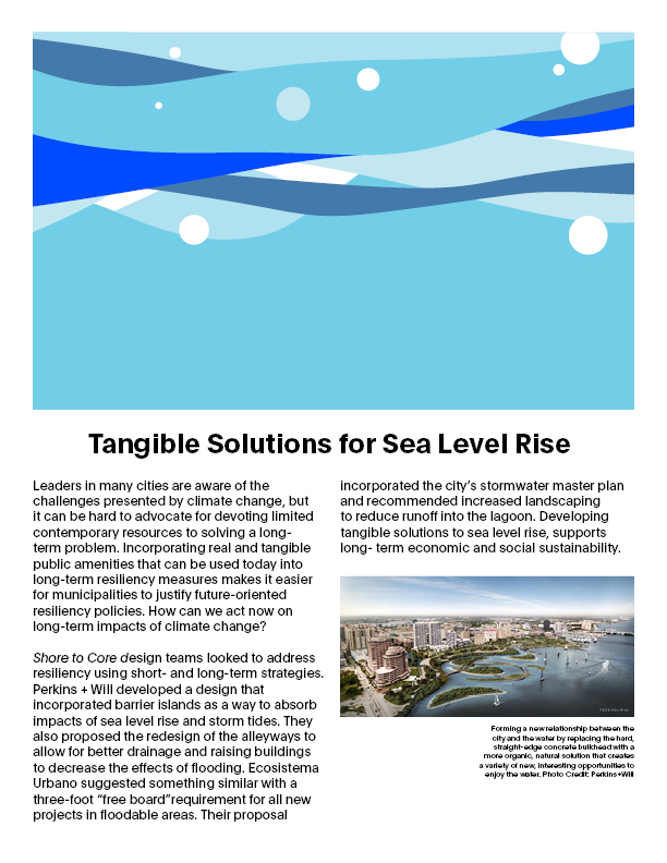 Shore to Core is a design competition that looks to create a healthier and more resilient downtown and waterfront in West Palm Beach. The competition asks: How can we reimagine our downtowns to make them more engaging and vibrant? How can cities collect information that informs future adaptation and growth? How can we facilitate social interaction among diverse groups? How can the built environment improve residents’ physical health, mental health, and social capital?