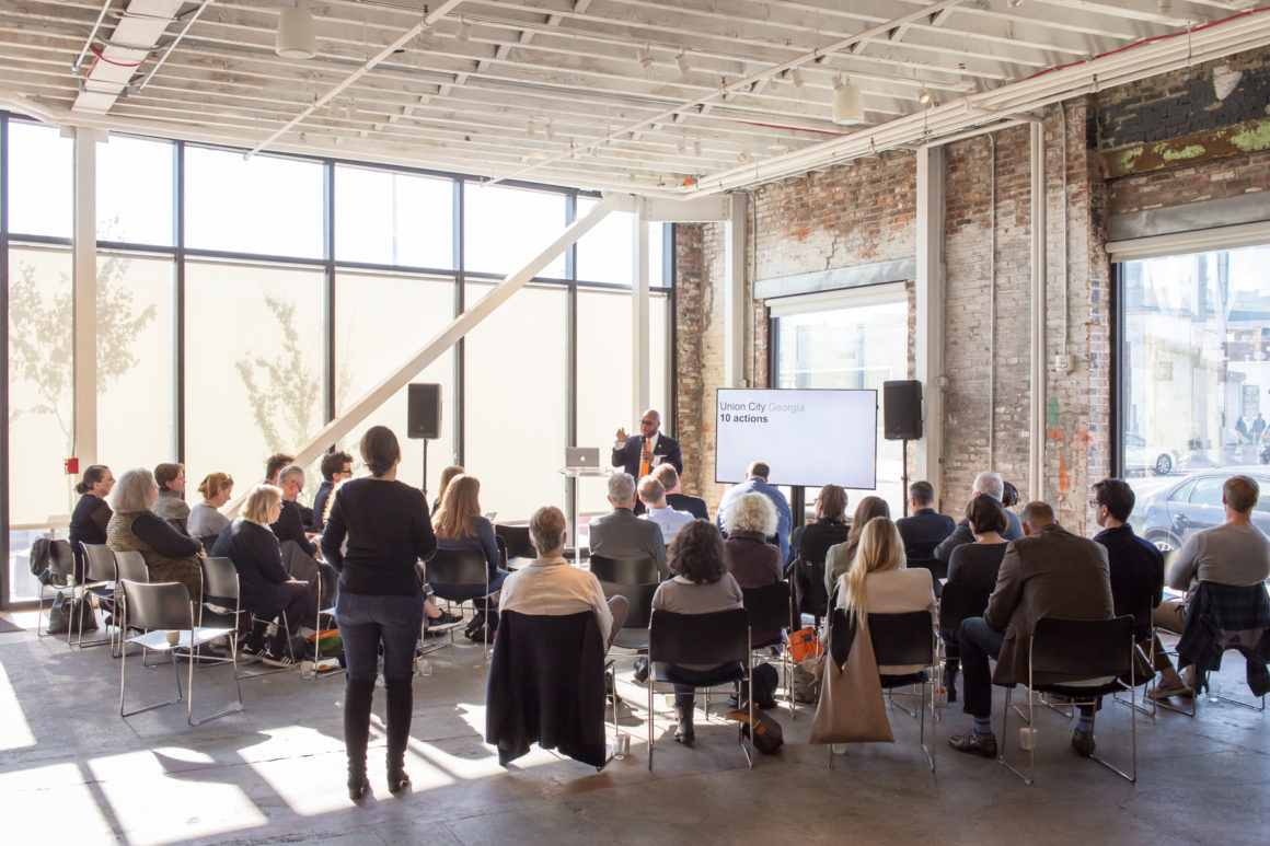 As a special capstone to the week, Van Alen brought together some of the participating mayors with the Council for an ideas exchange. The day before, the Council gathered at the Center for Architecture for a fast-paced design charrette addressing specific challenges in each mayor’s home city: Maricopa, AZ; Capitol Heights, MD; Union City, GA; and West Hollywood, CA. The ideas were then presented to the mayors—not as formal recommendations, but as a starting point for conversations between leaders in citymaking and design.
