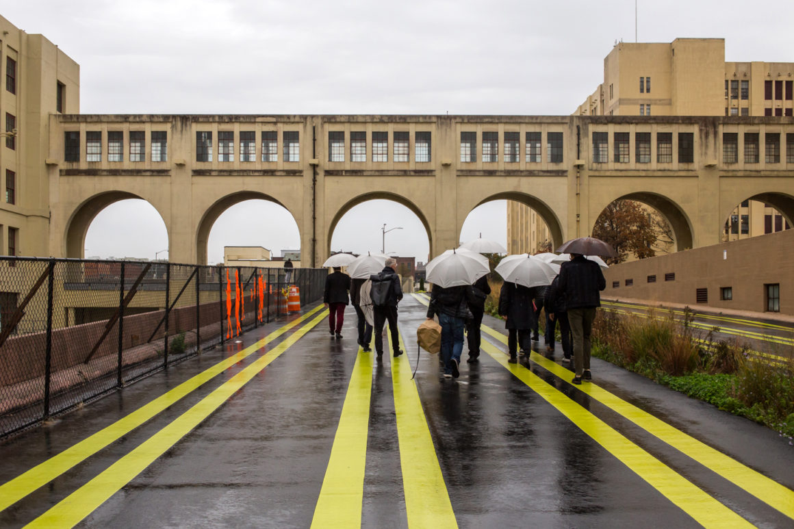 On a walk from BIG’s offices to the Downtown Brooklyn core, the Council heard from Regina Myer, President of the Downtown Brooklyn Partnership, a non-profit development organization that describes itself as “the local champions for Downtown Brooklyn.” As the group moved from the cobblestone streets of Dumbo to the unmissable cluster of new high-rise buildings in Downtown Brooklyn, Myer put the amount of growth into stark relief. After 15 years of growth since the neighborhood’s rezoning, “There’s been over ten billion dollars’ worth and over 26 million square feet of development, mostly in apartments,” she said. “We are now projecting 50,000 residents in Downtown Brooklyn. We had less than a thousand 15 years ago. This is a phenomenal shift.”
